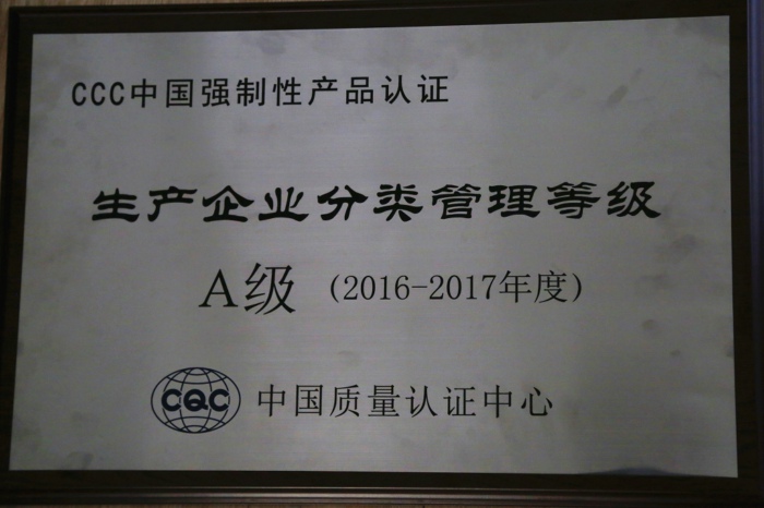 公司被評(píng)定為“A類生產(chǎn)企業(yè)”,可享受到中國質(zhì)量認(rèn)證中心對(duì)信用水平良好企業(yè)的優(yōu)惠政策,延長工廠現(xiàn)場(chǎng)的生產(chǎn)一致性和質(zhì)量保證能力的監(jiān)督審查周期,由原來的一年一次調(diào)整為兩年一次,同時(shí)新產(chǎn)品的“3C”認(rèn)證可先頒證后審核,將有效促進(jìn)企業(yè)提升品牌形象和市場(chǎng)競(jìng)爭力。