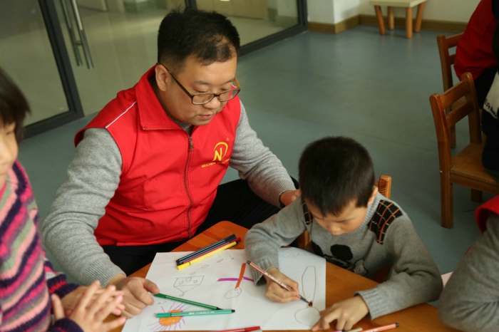 在福利院,大家陪著孩子一起畫畫、講故事,孩子們顯得特別的高興和開心??粗麄円粡垙垹N爛的笑臉,我們被他們身上的那份純真與快樂深深地感動。