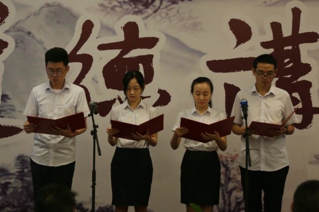 活動(dòng)在悠揚(yáng)的旋律中以廉潔自省的形式拉開了序幕。大家集中觀看了《將改革進(jìn)行到底之黨的自我革新》專題影片,領(lǐng)略了黨中央全面從嚴(yán)治黨的堅(jiān)定決心,并在道德經(jīng)典傳播員的帶領(lǐng)下,一同品味了清代廉臣孫嘉淦為官做人的八項(xiàng)基本準(zhǔn)則《居官八約》。參加人員現(xiàn)場(chǎng)分享了嚴(yán)守道德操守、堅(jiān)持廉潔自律的感悟,同時(shí)大家在主持人的帶領(lǐng)下做了勤政承諾。最后道德講堂為參加人員送上了精心制作的廉政文化折扇,希望在炎炎夏日中為大家送去清風(fēng),傳播廉政文化。