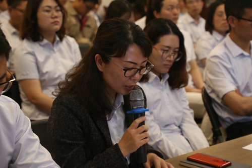 公司財務(wù)部馬晶晶、營銷一部洪弘作為參會代表結(jié)合各自崗位職責,分別作表態(tài)發(fā)言。表示今后將結(jié)合崗位職責和工作實際,繼續(xù)嚴格要求自己,時刻保持清醒頭腦,常懷敬畏之心,嚴守廉潔底線,不斷提升自身修養(yǎng)和思想覺悟,以擔當實干、廉潔自律的工作作風更好地服務(wù)企業(yè)經(jīng)營發(fā)展。