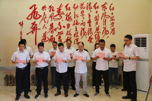 公司黨總支書記、副總經(jīng)理尤正波帶領(lǐng)全體黨員,一起面對黨旗高舉右手重溫入黨誓詞。黨總支副書記、總經(jīng)理陳健帶領(lǐng)全體黨員共同誦讀《國網(wǎng)江蘇電力黨員行為公約》,鏗鏘有力的誓詞、擲地有聲的公約,點燃了大家愛黨、忠誠、敬業(yè)、奉獻的激情。
