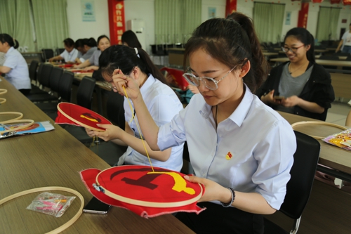 隨著絲線在女同志們的手中翻飛,活動(dòng)漸漸拉開了帷幕。只見她們熟練地使著針法,上下穿針引線,每一針都小心翼翼,每一個(gè)過程都精益求精,把對(duì)黨和祖國(guó)的熱愛化在針里、融入線中、繡在心里。一幅幅黨徽繡品表達(dá)職工們對(duì)黨的堅(jiān)定信仰和赤膽忠心。在繡黨徽間歇,黨員同志們還學(xué)習(xí)了中國(guó)共產(chǎn)黨黨史,回憶紅色經(jīng)典和黨的崢嶸歲月。